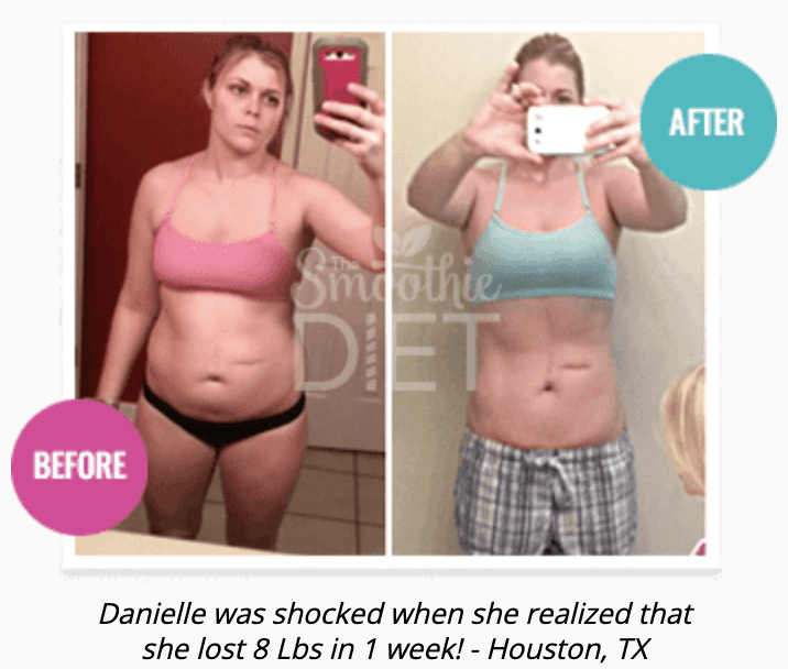 “Getting into this diet was so easy and the results were so fast. After only 1 week on the Smoothie Diet I weighed myself and realized I had lost 8 pounds! I feel better and more confident than I have in a very long time, I don’t have to suck in my stomach to button my pants anymore and I still have to stop to do a double take everytime I walk in front of a mirror.”